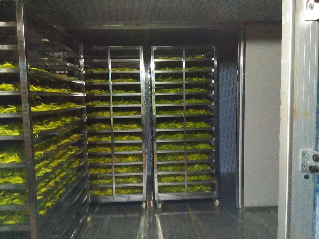 將擺放好黃花菜的物料車推入烘干房內(nèi),設(shè)定好烘干時(shí)段,溫度,排濕量,啟動(dòng)設(shè)備進(jìn)行烘干。
